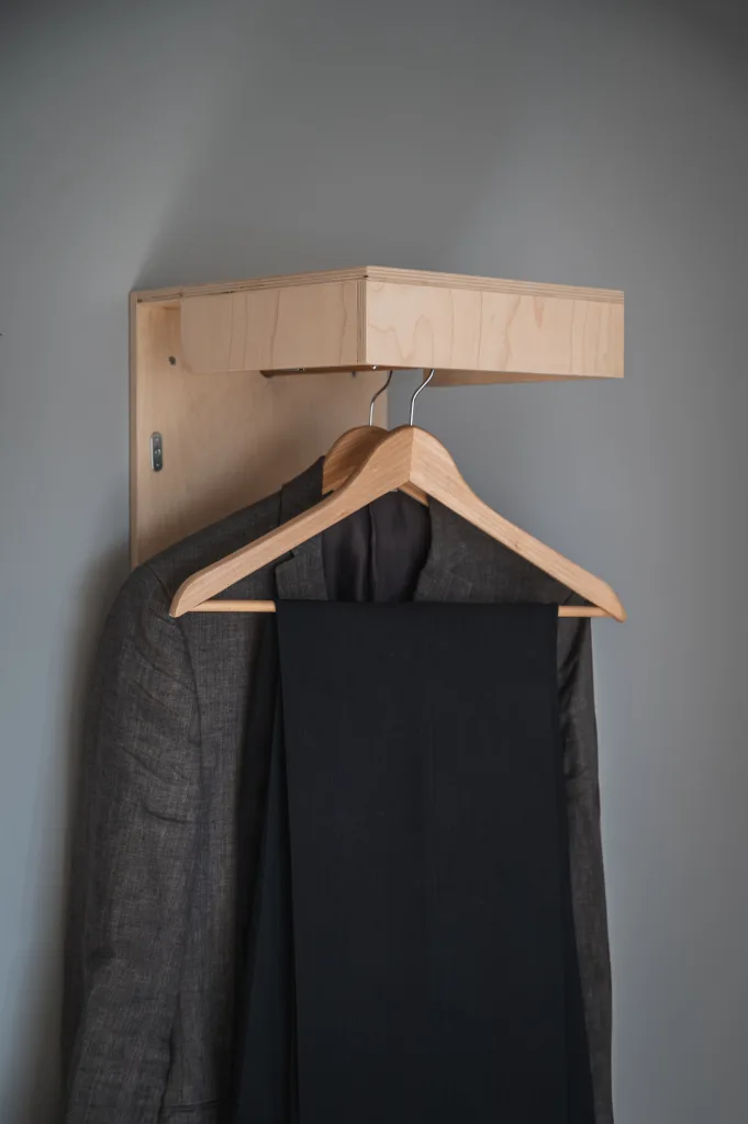 Häng fram det du ska ha på dig i morgon, eller på kalaset. När du inte använder den så fäller du ner den. Fiffigt!