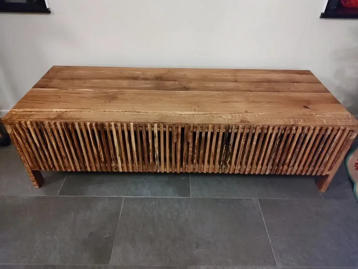 En stadig bänk i ek för exempelvis TV eller musikanläggning.